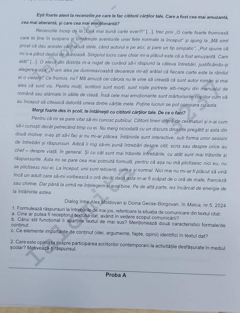posibile sugestii și pentru proba scrisă, textul argumentativ