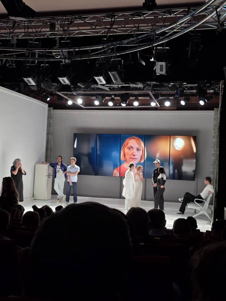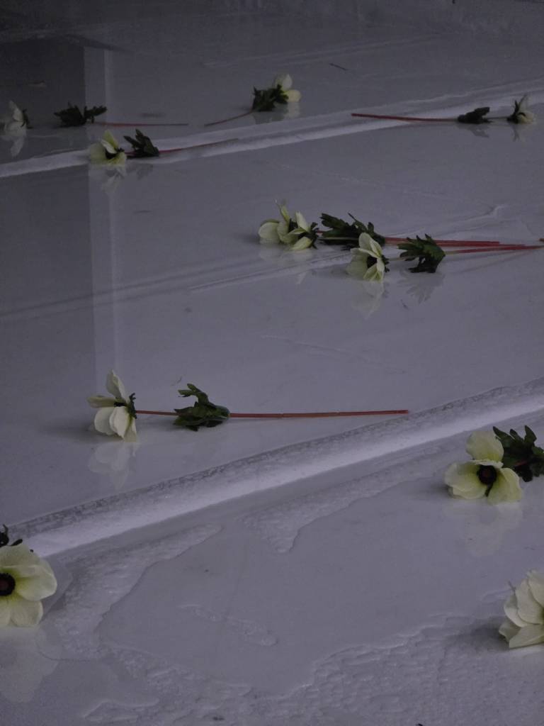 Secvența ploii aduse pe scenă, care separă într-un dreptunghi fluid, personajul mamei de celelalte prezențe umane și o aduce alături de fostul bărbat, este emoționantă și originală. Apa care inundă albul scenei o transformă pe Christiane Kerner (interpretată de Emilia Bebu) într-o Ofelie modernă, toate personajele, îmbrăcate în negru la sfârșitul piesei de teatru, participând la intrarea în nemurire a acestei femei. Florile depuse pe scenă, transformată într-un mormânt acvatic, în acordurile melodiei ”Tomorrow Is My Turn”, încheie dramatic un spectacol teatral despre viața de toate zilele, în care Istoria mare se intersectează cu istoriile personale.